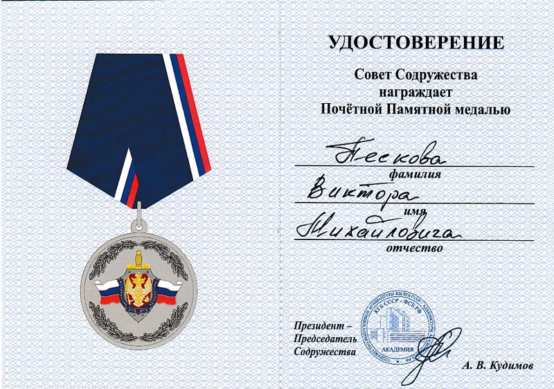 Медали Содружества выпускников аспирантуры КГБ СССР - адъюнктуры ФСБ России