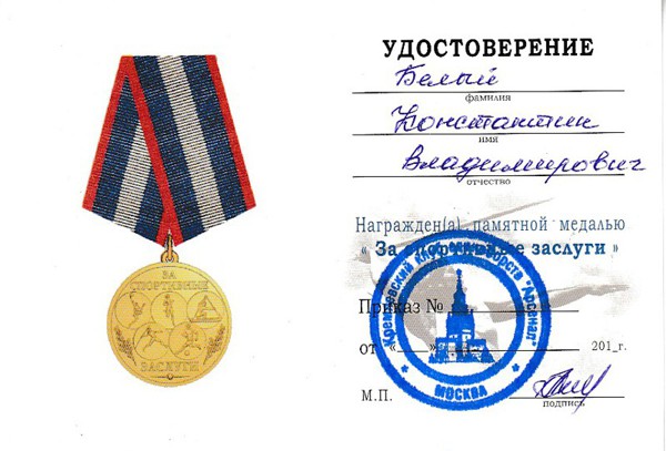 Благодарность Виталию Геркулесову (лучший руководитель отделения года, Бусидо-Дубна)