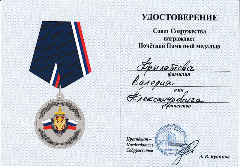 Медали Содружества выпускников аспирантуры КГБ СССР - адъюнктуры ФСБ России
